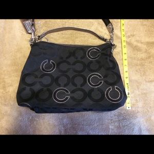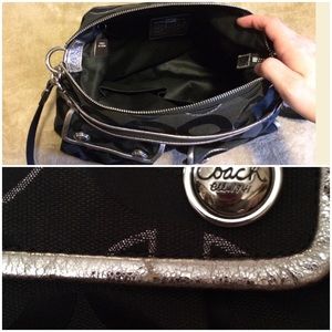 Two pockets on the front outside, zipper on the inside, two slip pockets on the inside. The metallic is worn a little around both front pockets. I pictured the worst spot where it is coming off. This was used gently by my mother so the rest is like new. Open to offers ✌️