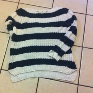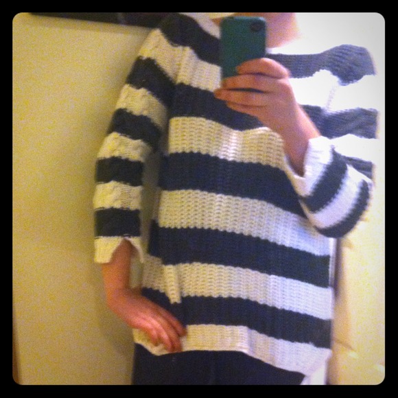Olive and white, super-cozy striped knit from Zara. Braided detail up the arm (see 3rd photo). Only worn once; I love this sweater - just not on me).