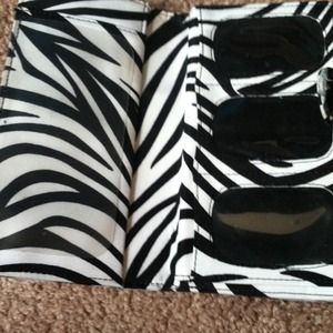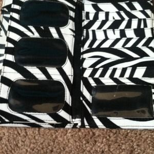 Lightly worn zebra print wallet. It opens up and has multiple spots for cards and slots for pictures