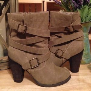 These taupe Bakers boots are in great condition and adorable. Zippers on the inner leg keep them on with a decorative strap around the boot. They are in great condition and a size 6!