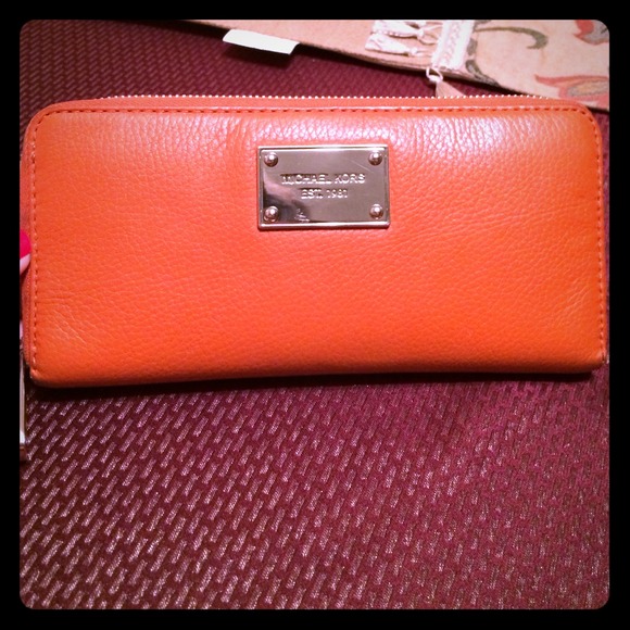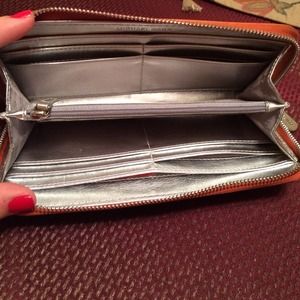 Orange leather wallet in perfect condition. Used, but taken good care of. 8 credit card slots in total with a middle zipped compartment đź’ŻAuthentic. Matching purse also listed in my closet.