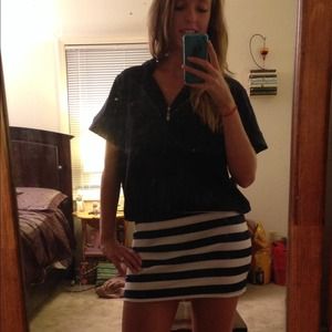 This adorable dress is new without tags! The top portion mimics a hoodie while the bottom looks like a mini skirt! Zips up the front to fit your taste!
