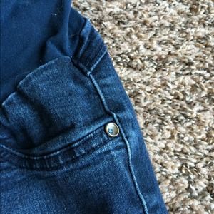 Dark wash. Skinnies. Full panel is good for 2nd and 3rd trimester. Super soft! I lived in these jeans during my pregnancy! Missing one rhinestone on hip, barely noticeable. (See 2nd pic)