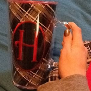 This is a brand new thermal lunch bag monogrammed with the initial H on hot pink. Comes with matching cup