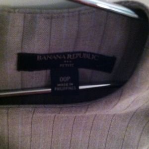 Light gray with dark gray and blue pin stripes. Excellent condition. Lined.
