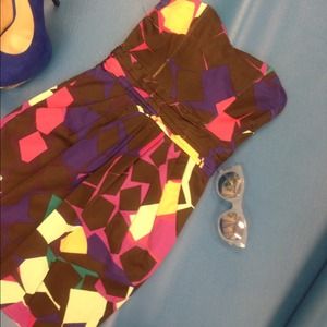 Cute little dress that can be strapless or worn with adjustable spaghetti straps. Runs a little small. Colors are a bit faded