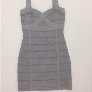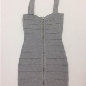 Form fitting silver bandage dress. Short on me (I'm 5'2"). Worn twice. Would fit an XS or more petite small