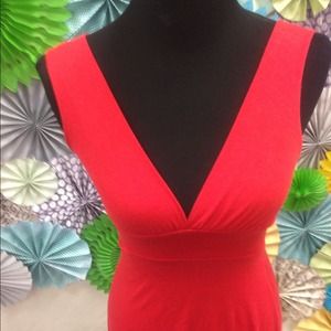Cotton dress that works from day to night and summer to fall. Deep v cut in both front and back. A-line style that falls to just below knee
