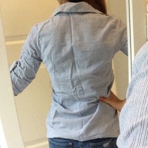 Usually worn with a belt (not shown in this pic). Sleeves roll up and button into cuffs. One button is missing (as shown) by neck line