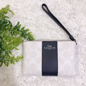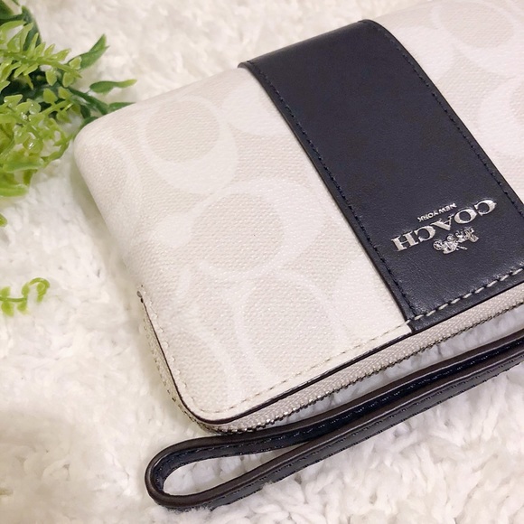 Coach zip wristlet in signature canvas White and with Cross grain leather in Black