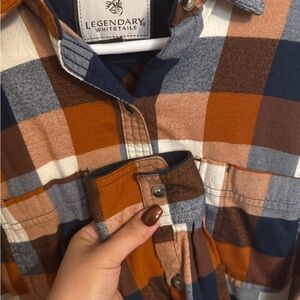 Upgrade your wardrobe with the Legendary Whitetails women’s Plaid Shirt. Featuring a stylish orange and blue plaid pattern, this shirt is perfect for casual outings. Enjoy comfort and style with this versatile piece.