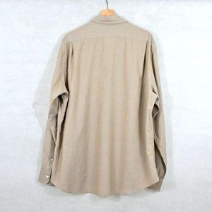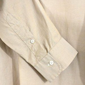 Features: Solid pattern design. Button up shirt style. Long sleeve with single barrel (1) button cuff. Spread collar. Yoke. Lightweight, woven material. Extra buttons. No pockets. No logo. Longer tail for tucking. Machine washable. Made in China