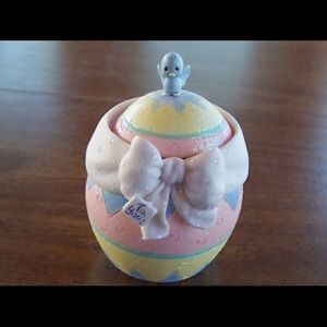An Easter Egg with a lid that flips between a Little Yellow Chick & a Blue Bird. Porcelain. 4" Tall.