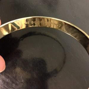 Kate Spade New York "As Good As Gold" enameled bangle engraved on the inside. Approx. inner circumference : 7 1/2". Approx. band width: 3/8". Brass/goldtone plating/epoxy. No bag or box but will ship in a gift box