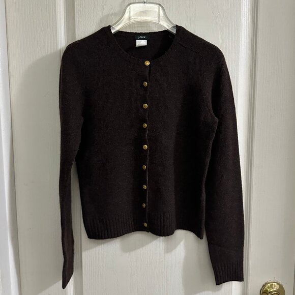 Vintage GUC J. Crew Women Brown Cardigan Cashmere Angora Blend Size Small
