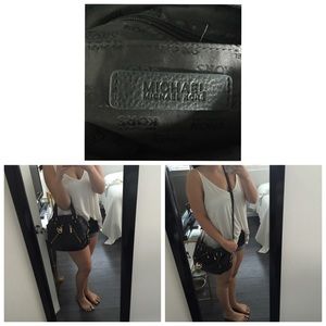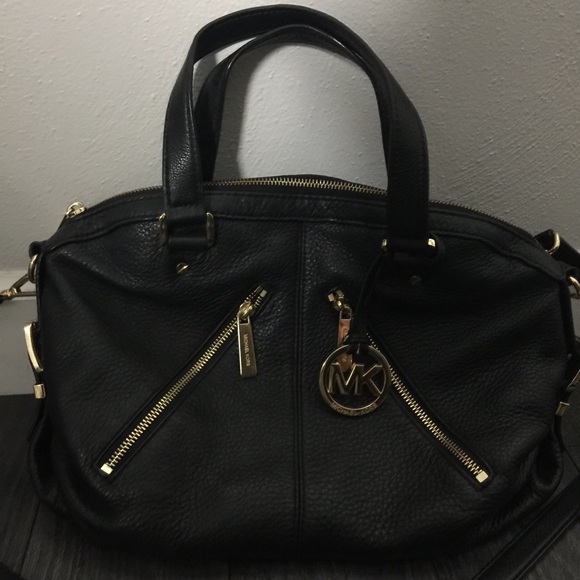Let this versatile black leather Michael Kors bag be the perfect addition to your outfit! Accessorized with gold hardware,removable/adjustable strap, and 9 pockets (2 with zipper in front,2 in back, 4 inside, 1 with zipper inside)! This is the perfect bag for a night out, an adventure or casual day out shopping! { also sold on Ⓜ️erci; Kaitlinjoy }
