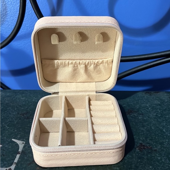 NWOT mini jewelry box perfect for travel. Will fit nicely in carry on or checked luggage. Holds a decent amount of jewelry.