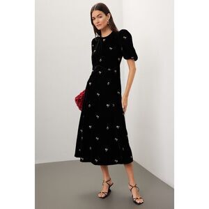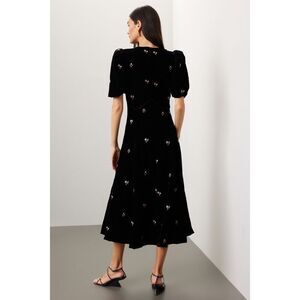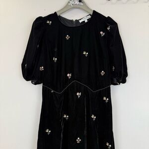 Delicate embroidered florals lend an ultra-feminine vibe to black velvet in this dress by Sea New York. Pair with your favorite knee-high boots to slay day-to-night fashion.