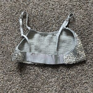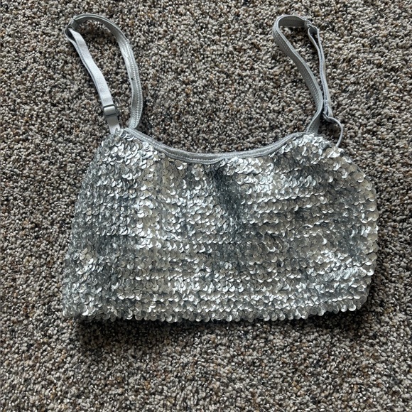 Dazzling silver top with sequins. Ideal for festive occasions. This is a collection of pre-owned and preloved lightly used Urban Outfitters clothing mainly women’s! There are dresses, skirts, shorts, pants, tank tops, sweaters, cardigans, tees, and more! Some even have a cute Y2K or vintage feel. Please message me if you want to bundle items and I’m always open to offers! They are used so there might be slight wear and tear so please check photos or ask ❤️