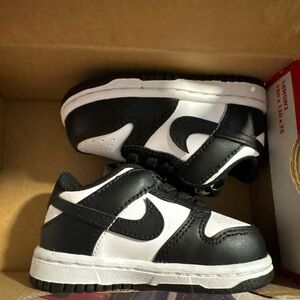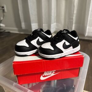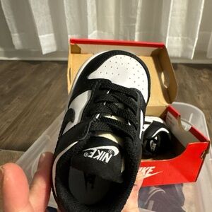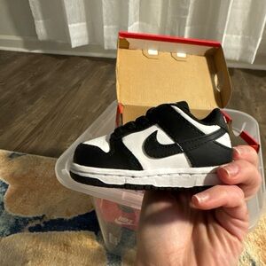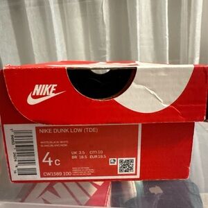 Sold ! Not available. Sold Classic Nike Dunk low top sneakers for kids. Black and white design. Ideal for daily adventures.