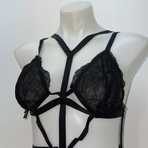 This style features a strappy front design, sheer lace cups, and a flattering high-leg cut. Adjustable straps provide a customized and comfortable fit. A beautiful and elegant lingerie piece from Victoria’s Secret.