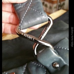 Authentic CHANEL Large Gray Lambskin Eight Knots Bag, Handbag, Tote