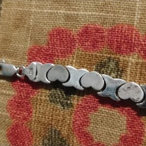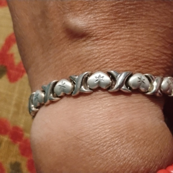 Elegant silver bracelet featuring heart and X,s designs. Perfect for adding a touch of sophistication to any outfit.❤️ & 🫂 hughs is sterling silver stamped 925 is in a great vintage condition size 7.1/2 long offers always welcome 🤗❤️
