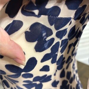 Elegant sheer base with a velvet floral pattern in a rich navy blue. Shoulder to crotch measurement- 27inches *small error on velvet flower, located under the arm so it is not noticeable. #sheer #victorianromantic