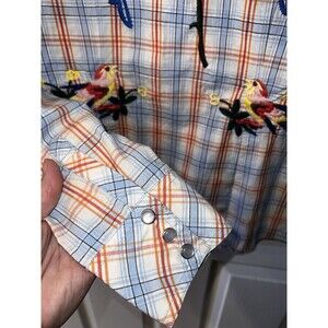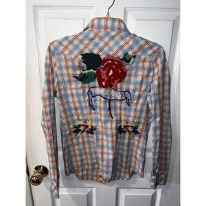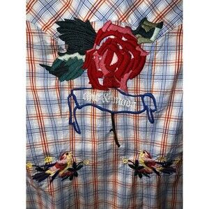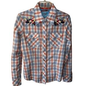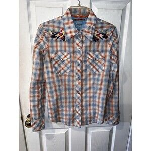 Vigoss Plaid Pearl Snap Western Shirt Jeweled Embroidered Studded Womens Sz L