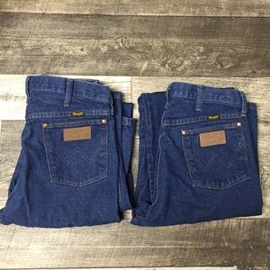 These jeans are sold. Two pair of 33 X 36 jeans for the price of one. New condition. These pants have both been washed 1 time. He Never wore them. Closet clean out time. They have to go.