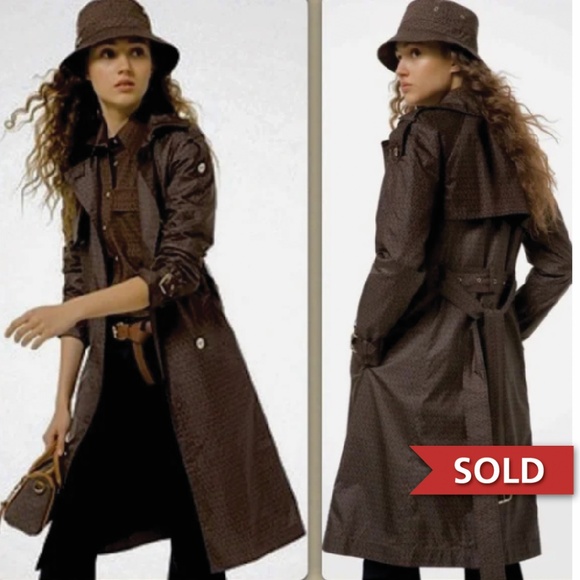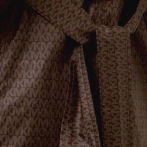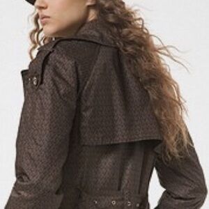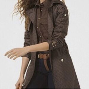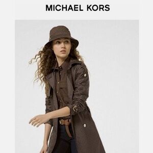 2023 MICHAEL Michael Kors MK Signature Logo Mid Length Brown & Gold Trench Coat. Condition like new condition.