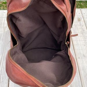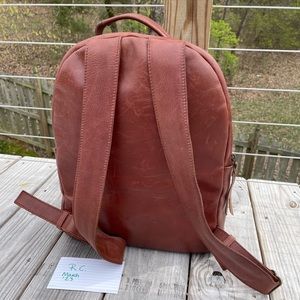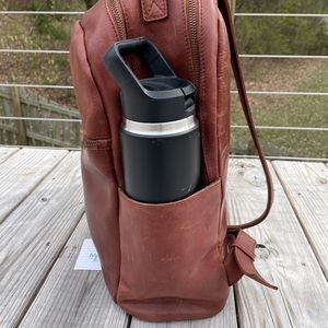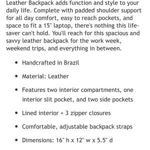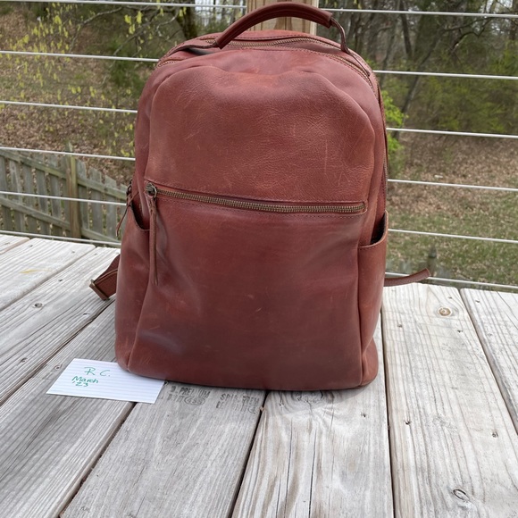 Padded & adjustable straps, padded laptop sleeve, 2 large compartments and front zip pocket. Gently used. Could use some conditioner (use natural containing beeswax) but overall good condition. See photos for details and dimensions. Style no longer on website.