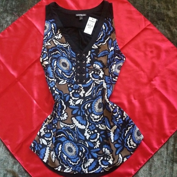 Very nice Express brouse. Front 100% polyester Back 100% rayon Perfect for fun Summer time. Perfect for gift