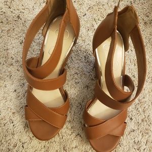 Incredibly comfortable wedges. Heel height is about 4 inches. Worn only once.