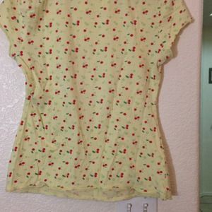 ⛔Sold⛔Nice pastel yellow and cherry pattern tee