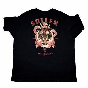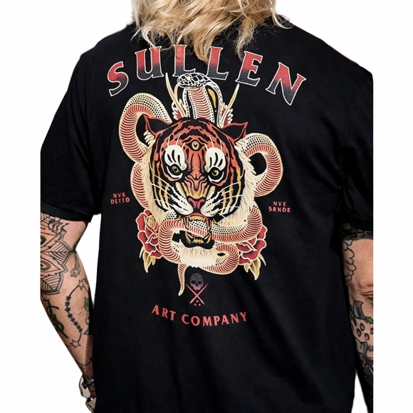 The Sullen Art Collective Men's 3 Eye Tiger T-Shirt in size 4XL is a bold and artistic addition to any wardrobe. Featuring a unique design by Tom Haubrick, this black shirt showcases a striking tiger snake graphic that is sure to make a statement. The big and tall size ensures a comfortable fit for those who prefer a larger cut, while the artistic theme adds a touch of creativity to any outfit. Perfect for fans of art and those looking to express their individual style with a high-quality, eye-catching tee.