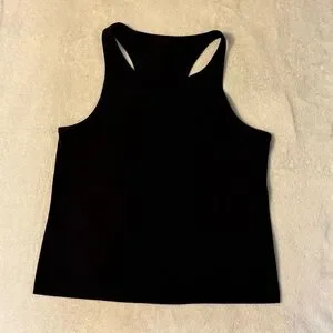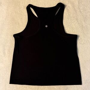 Sleek black tank top by Lululemon Athletica. Perfect for workouts or casual wear. Comfortable and stylish design. Worn a handful of times, in great condition!
