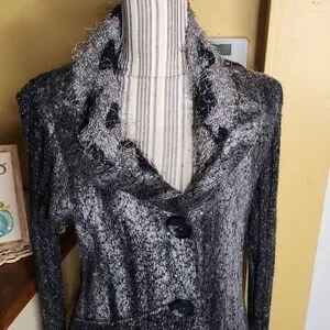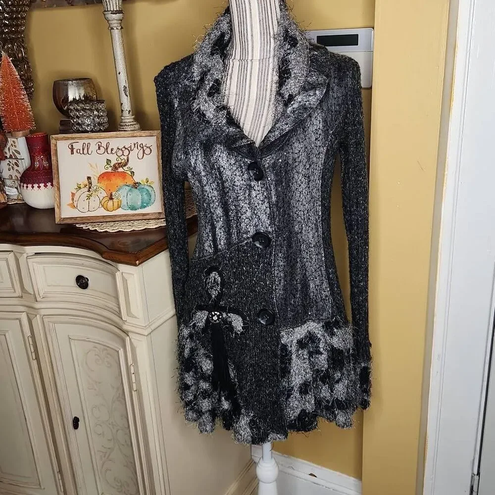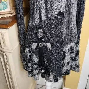Sioni cardigan boho chic women's size M Witchy vibes Gray 40% cotton 30% acrylic 30%polyester Good condition Button closure P2p 18" stretches to 20" Length 30"