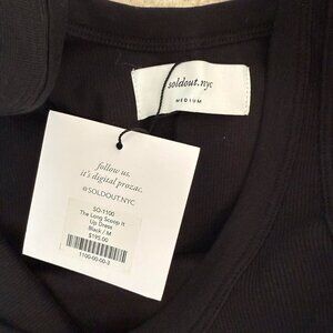 Brand new with tags from NYC-based label SoldOut. This is the “Long Scoop It Up” dress in black, a sleek, minimal ribbed knit maxi with a scoop neckline and side slit in the back. Hugs in all the right places. So flattering and easy to style for day or night.