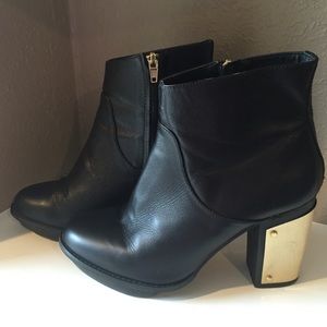 Good condition. Very comfortable and easy to walk in. Black leather with a gold plated heel 💋