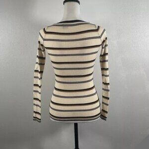 Theory Mirzi Refine Merino Wool Striped Round Neck Ribbed Stretchy Sweater OP
