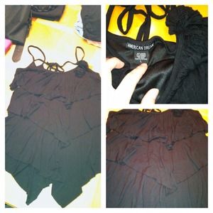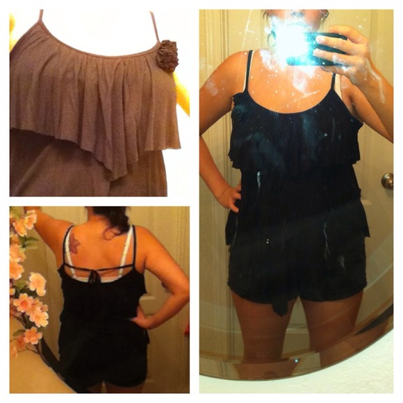 ❤Black top with a fabric flower detail as shown in pic. Has a tie in the back. Worn once. ❤