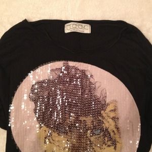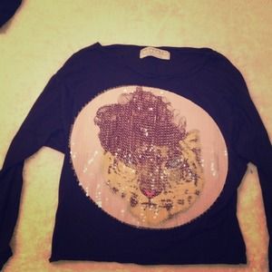 Zara tshirt. Long-sleeve, with leopard print made of sequens. Relaxed top, can fit sizes 2,4.
