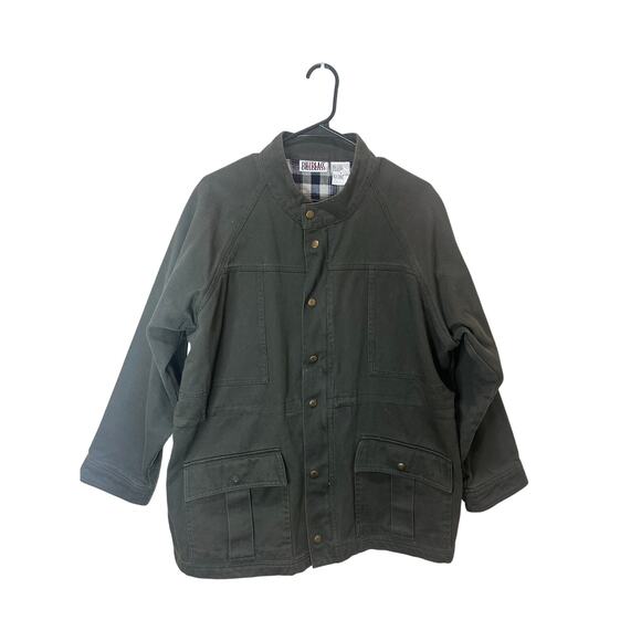 Bill Blass Vtg Chore Coat Sz L Green Barn Jacket Flannel Lined - Missing Buttons