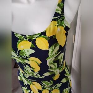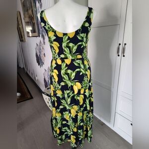 This LOFT dress in size large features a vibrant lemon color with a fit and flare style, making it a fun and unique choice for any wardrobe. The maxi/midi length provides a comfortable and trendy look, perfect for any occasion. The sleeveless design and pullover closure add to the overall ease and convenience of wearing this stylish dress. Suitable for women who enjoy a comfortable yet fashionable clothing option.