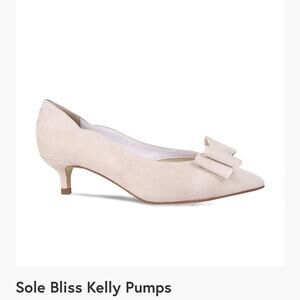 The Sole Bliss Kelly Blush (Barely Pink) Suede Leather Low Kitten Heel Pumps are a luxurious and stylish choice for women in size 11 US (42 EU). These elegant heels feature a pointed toe, 1.75 inch kitten heel, and added comfort and support. Made from high-quality suede leather, these shoes are perfect for formal occasions like weddings, parties, christenings, and more. The double bow toe accents and cushioned insole make them a chic and sophisticated yet comfortable addition to any wardrobe. Originally $315 style is retired. Made in Spain by the brand Sole Bliss, these heels embody a sense of royal elegance (as worn by the Queen of Sweden in her Royal Portrait!) and are sure to make a statement at your next special event.