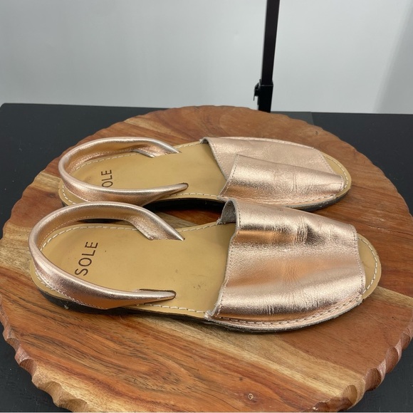 Sole Leather Slingback Flat Menorcan Sandals Rose Gold Sz 40 8.5