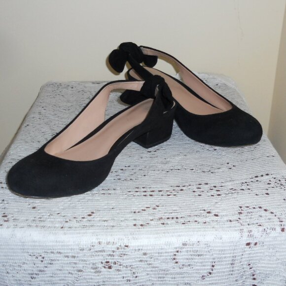 Sole Society 7 1/2 Black Velvet Slingback Heels Bsck Bow