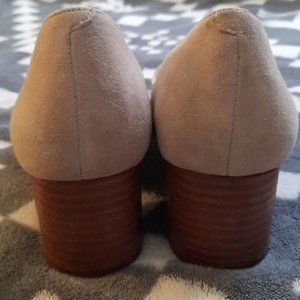 Elegant beige suede heels. Perfect for any occasion. Comfortable block heel design. I’m in between an 8-8.5 and these were closer to an 8 in size so they were too tight for me. Never worn after purchasing from other posher.