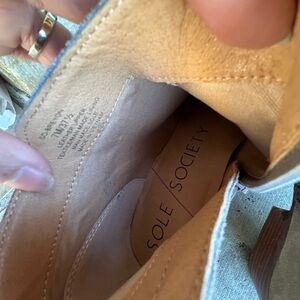 Sole Society almond toe suede leather booties in color:Honey Tan. Pre owned great condition Sz-7